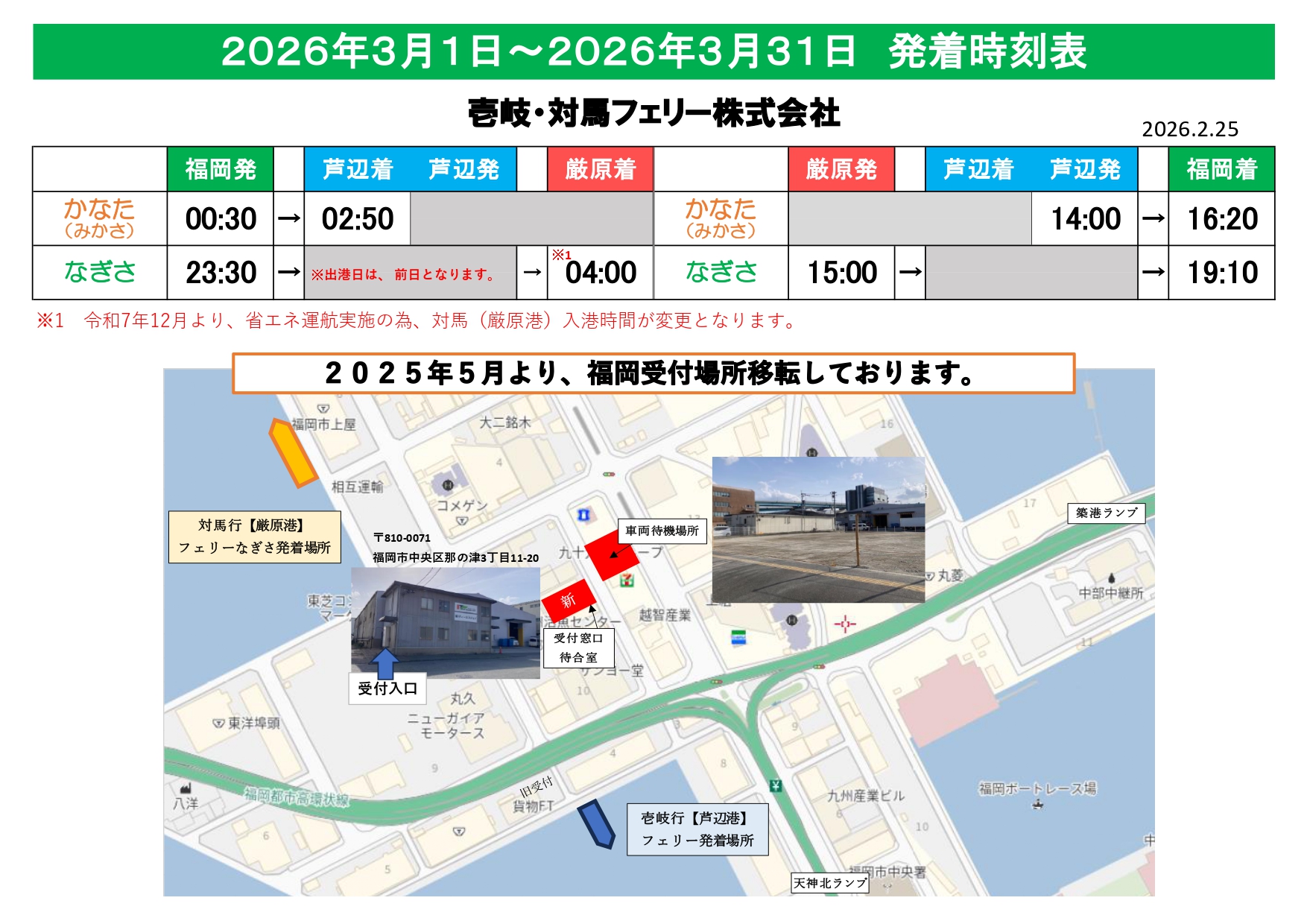 発着時刻表 料金表